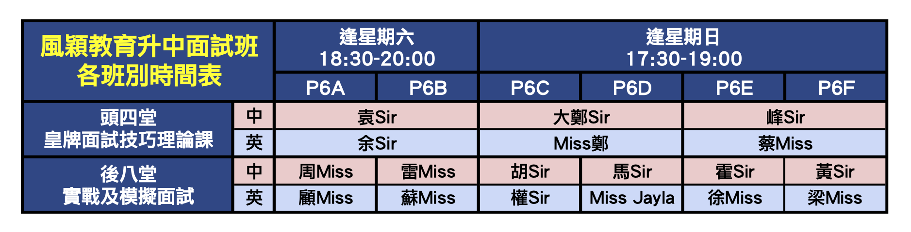 *如家長想報心儀導師可於報名表上remark,分班時會按籌號順序安排(即先到先得)如該導師班別已滿會安排學生至另外一班。