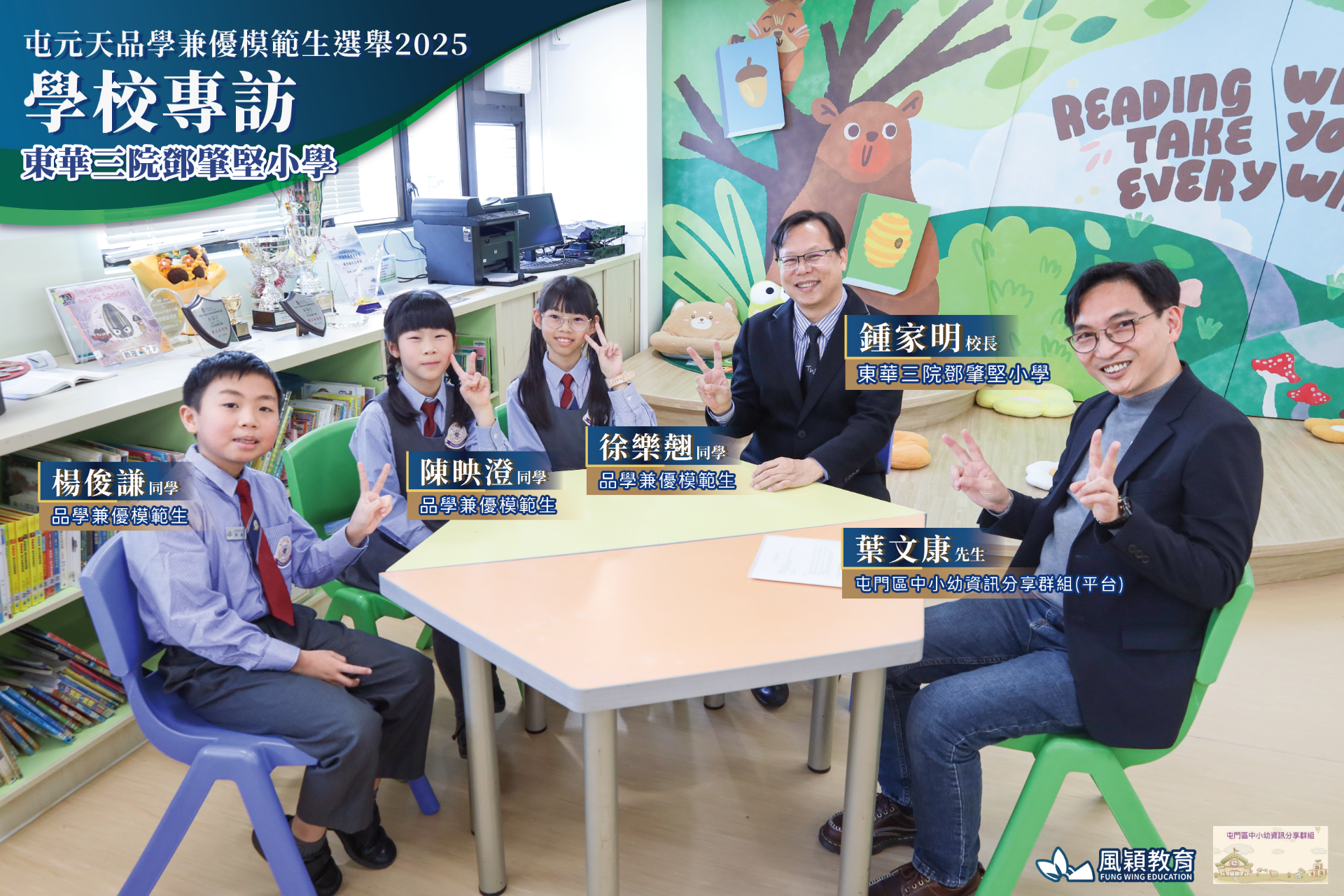 由 屯門區中小幼資訊分享群組(平台) 聯同 風穎教育機構 合辦的「屯元天品學兼優模範生選舉2025」圓滿舉行!群組創辦人 葉文康先生 走進 東華三院鄧肇堅小學,與 鍾家明校長 及三位得獎學生 徐樂翹同學、陳映澄同學、楊俊謙同學 進行了一場溫馨又充滿正能量的專訪!🎤✨