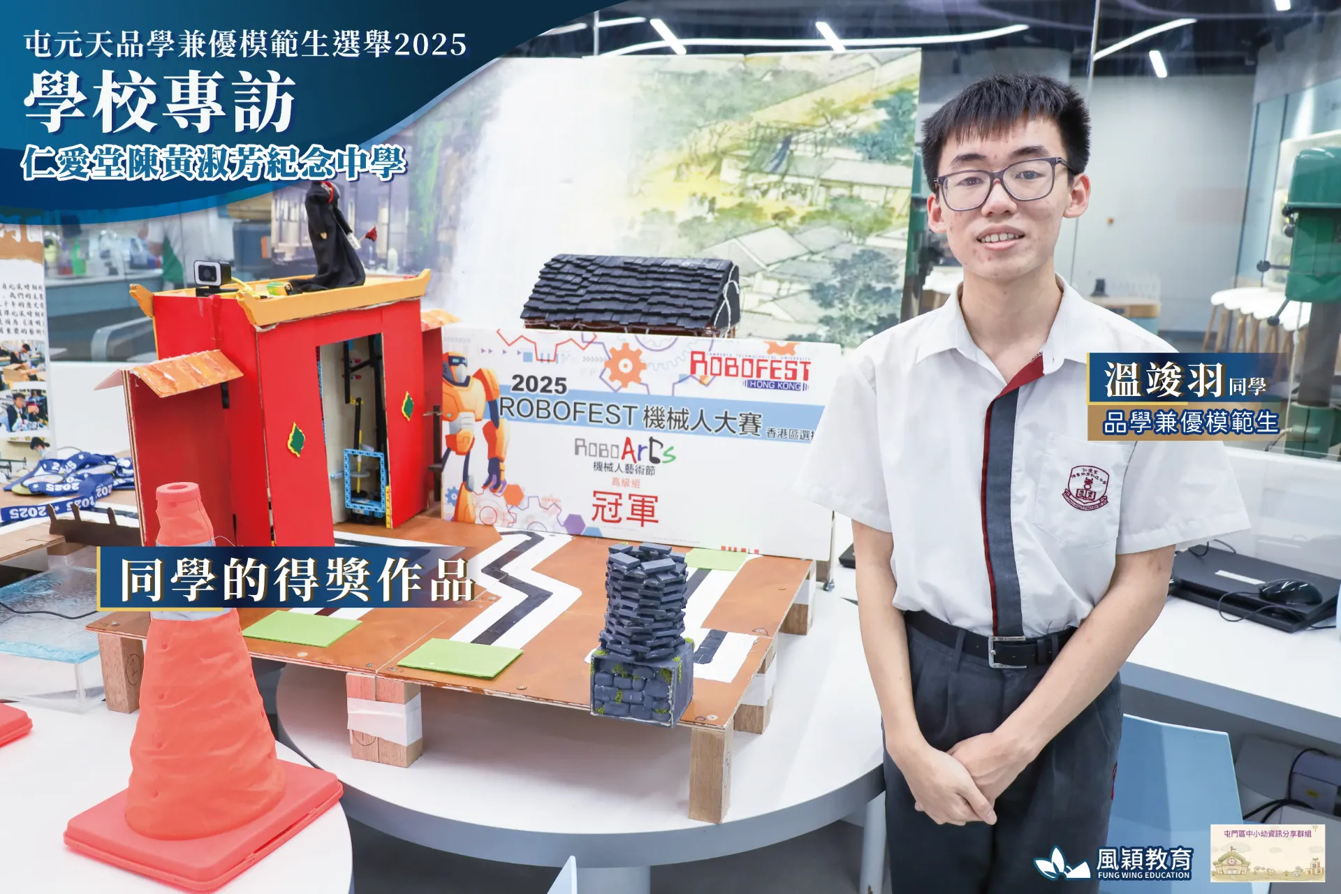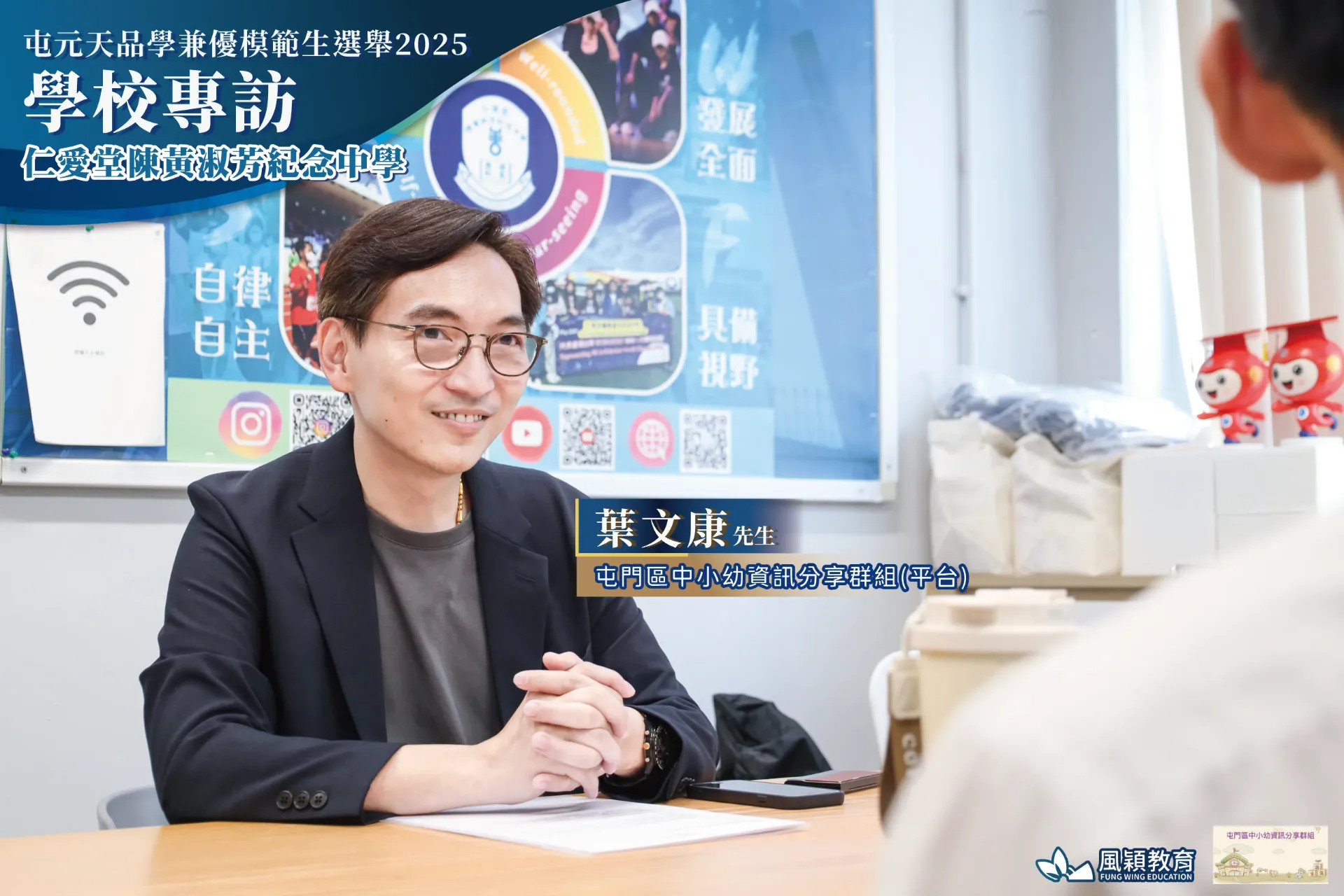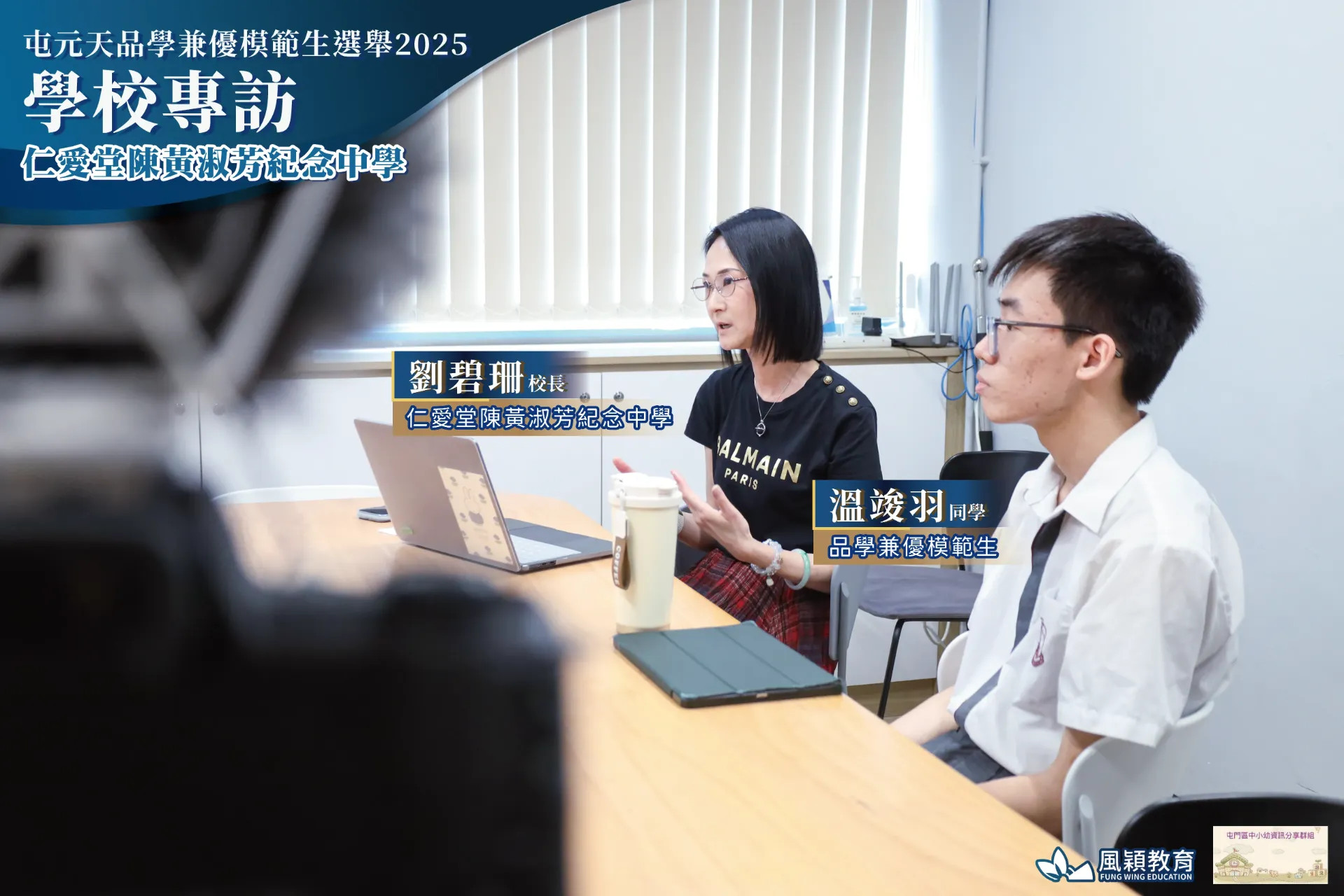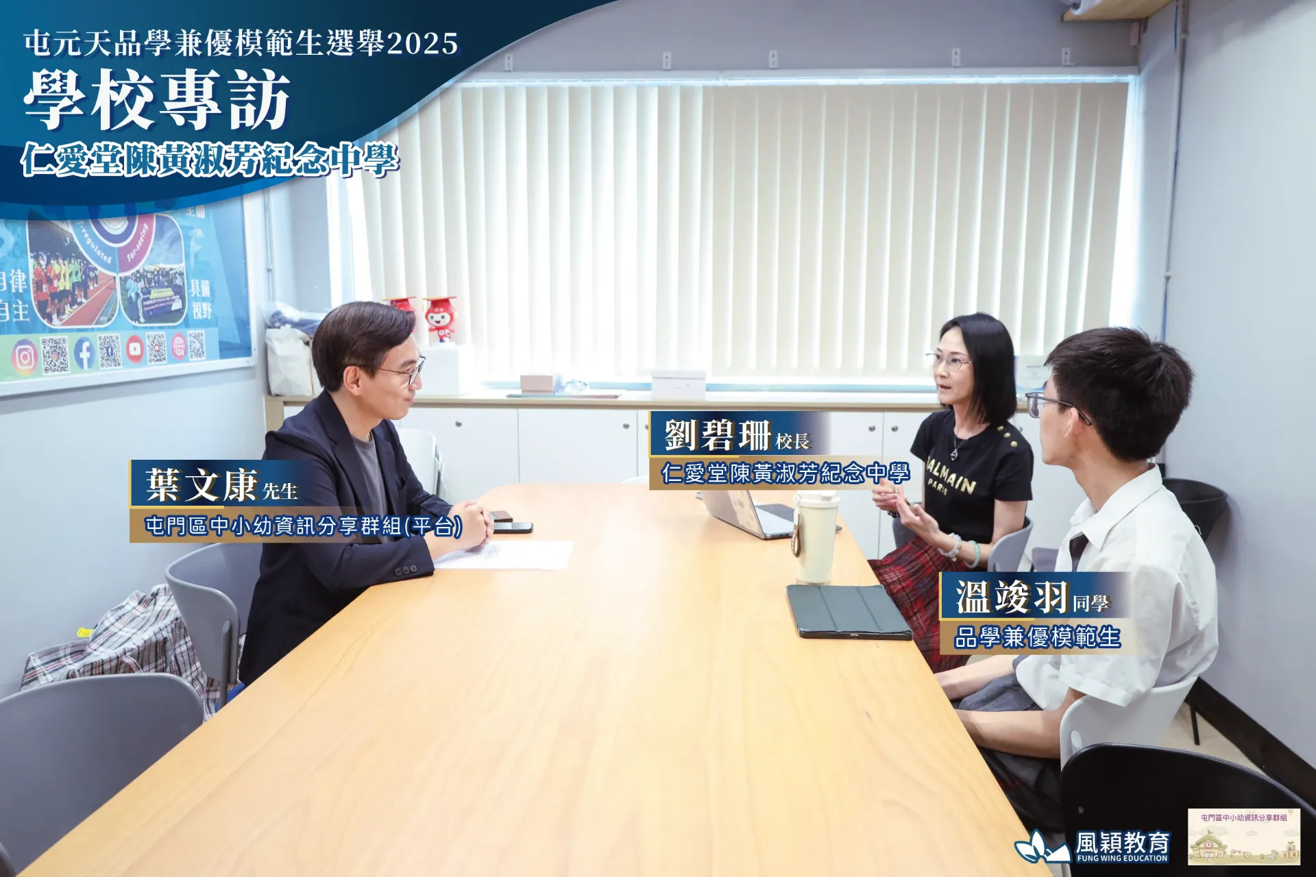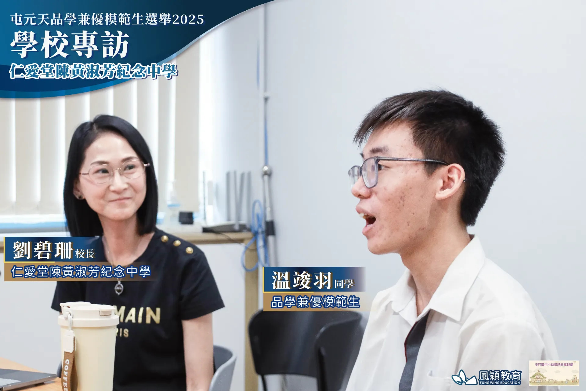 由 屯門區中小幼資訊分享群組(平台) 聯同 風穎教育機構 合辦的「屯元天品學兼優模範生選舉2025」圓滿舉行!10月10日,群組創辦人 葉文康先生 走進 仁愛堂陳黃淑芳紀念中學,與 劉碧珊校長 及得獎學生 溫竣羽同學 進行了一場專訪!🎤✨