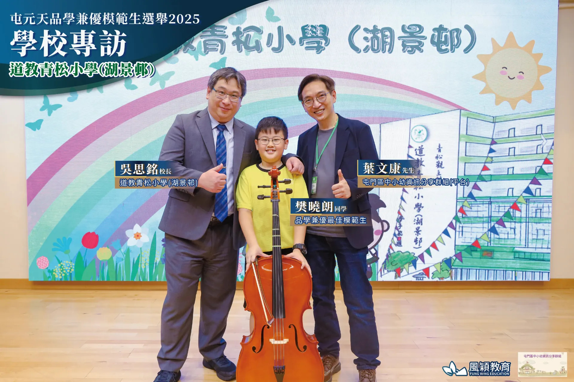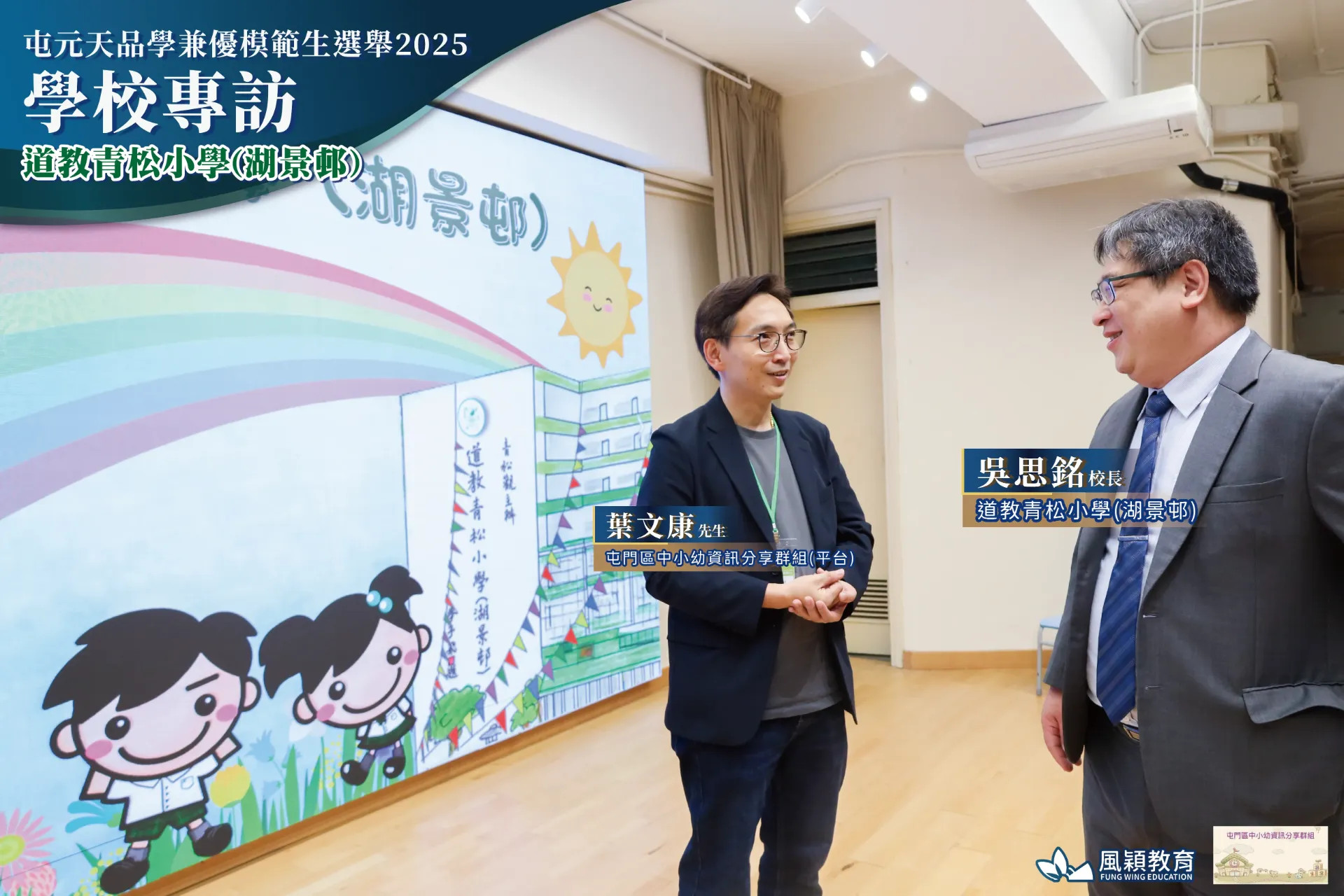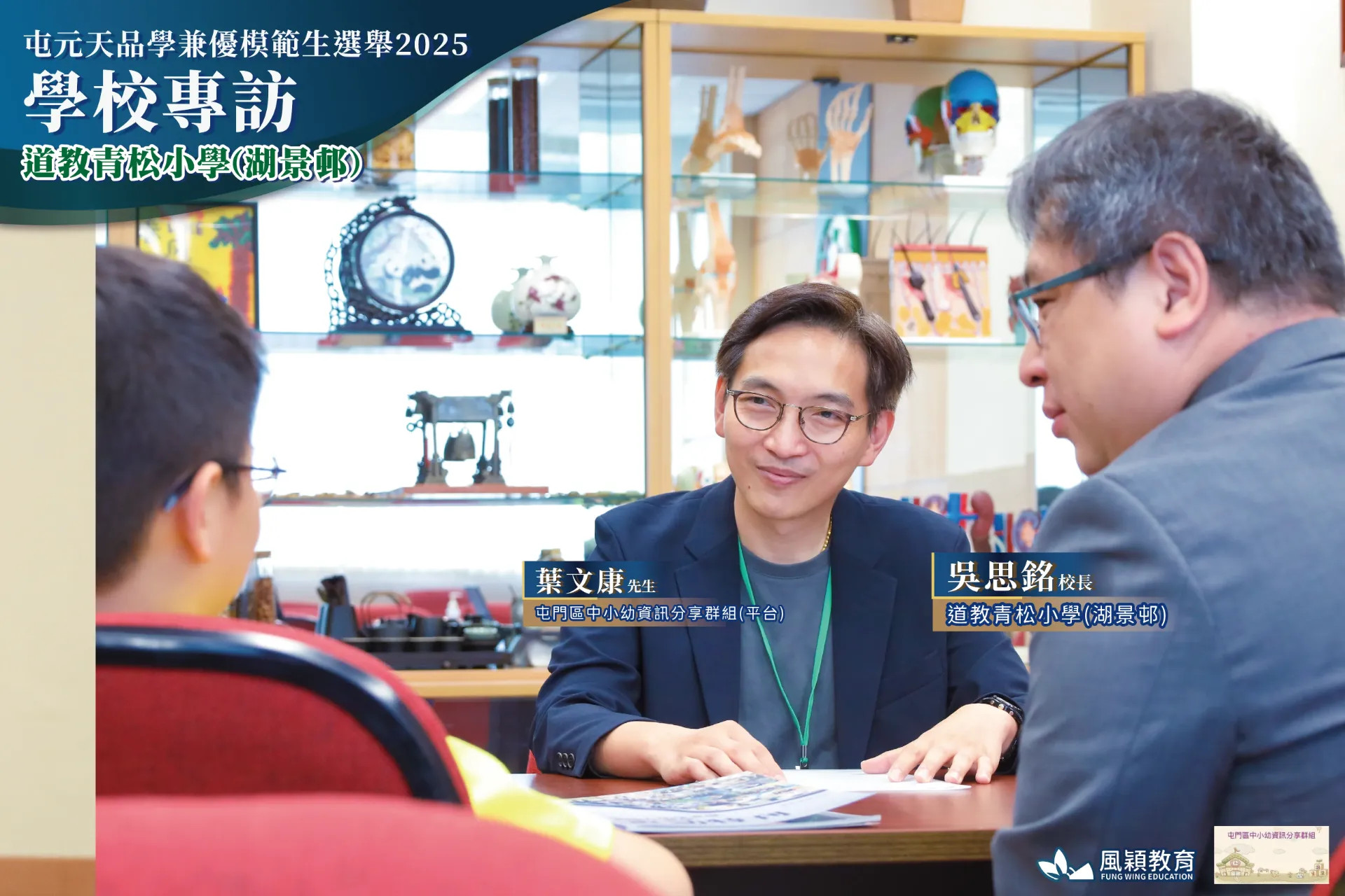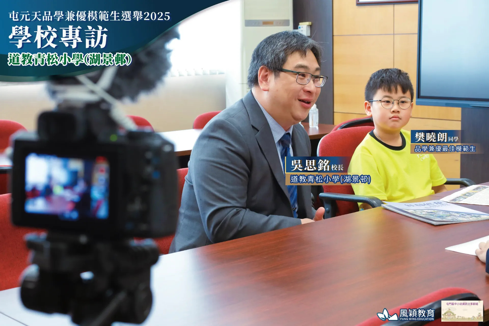 由 屯門區中小幼資訊分享群組(平台) 聯同 風穎教育 合辦的「屯元天品學兼優模範生選舉2025」圓滿舉行!10月8日,群組創辦人 葉文康先生 親臨 道教青松小學(湖景邨),與 吳思銘校長 及得獎學生 樊曉朗同學 進行了專訪!🎤✨